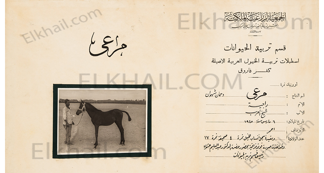 وأوصاف “مرعى”: “أحمر”، والتُقِطت له صورة فوتوغرافية بحضور الدكتور عبد العليم عشوب، رئيس قسم التربية فى محطة كفر فاروق (محطة الزهراء).